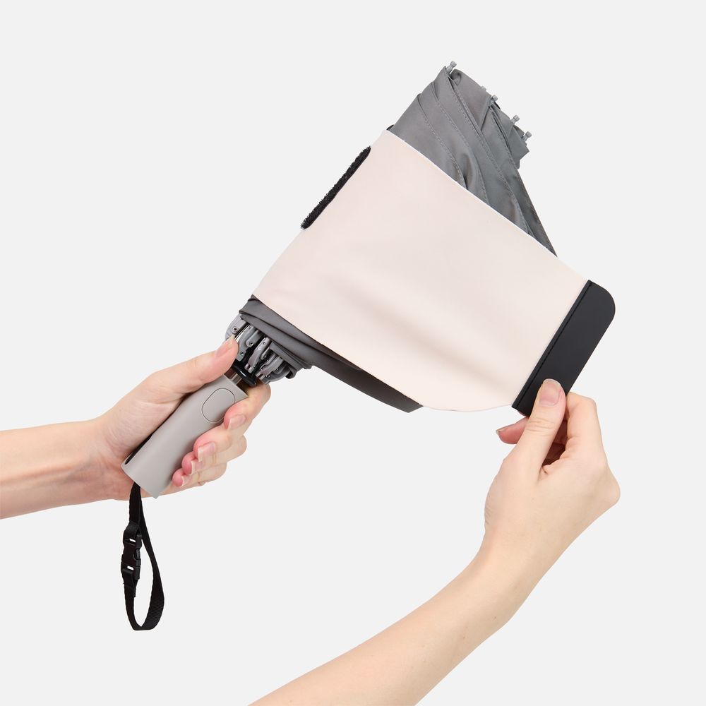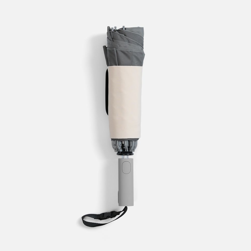 Складываясь после дождя, он прячет мокрую поверхность внутри, а сухая остается снаружи — в закрытом положении зонт не побеспокоит окружающих и не намочит одежду. Благодаря застежке на ремешке, зонт удобно подвесить, например, на рюкзак.