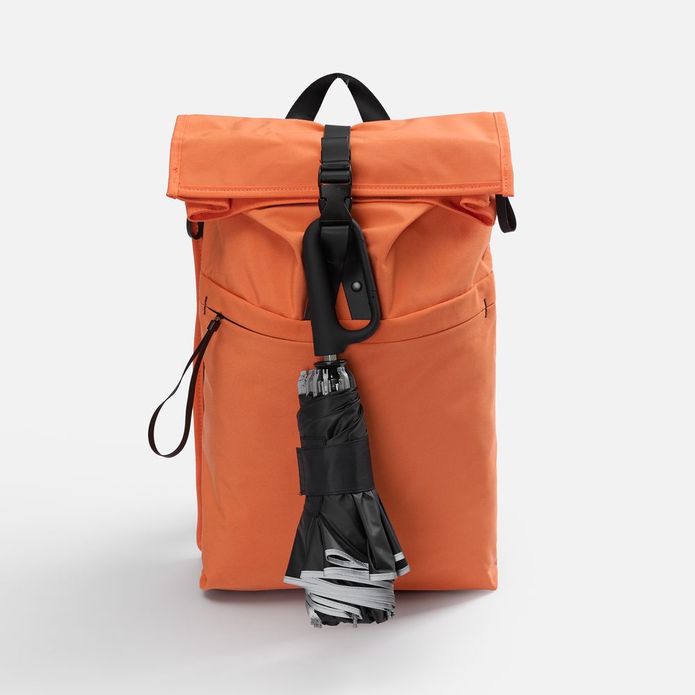 Складываясь после дождя, он прячет мокрую поверхность внутри, а сухая остается снаружи — в закрытом положении зонт не побеспокоит окружающих и не намочит одежду. За ручку-карабин зонт удобно подвесить, например, на рюкзак.