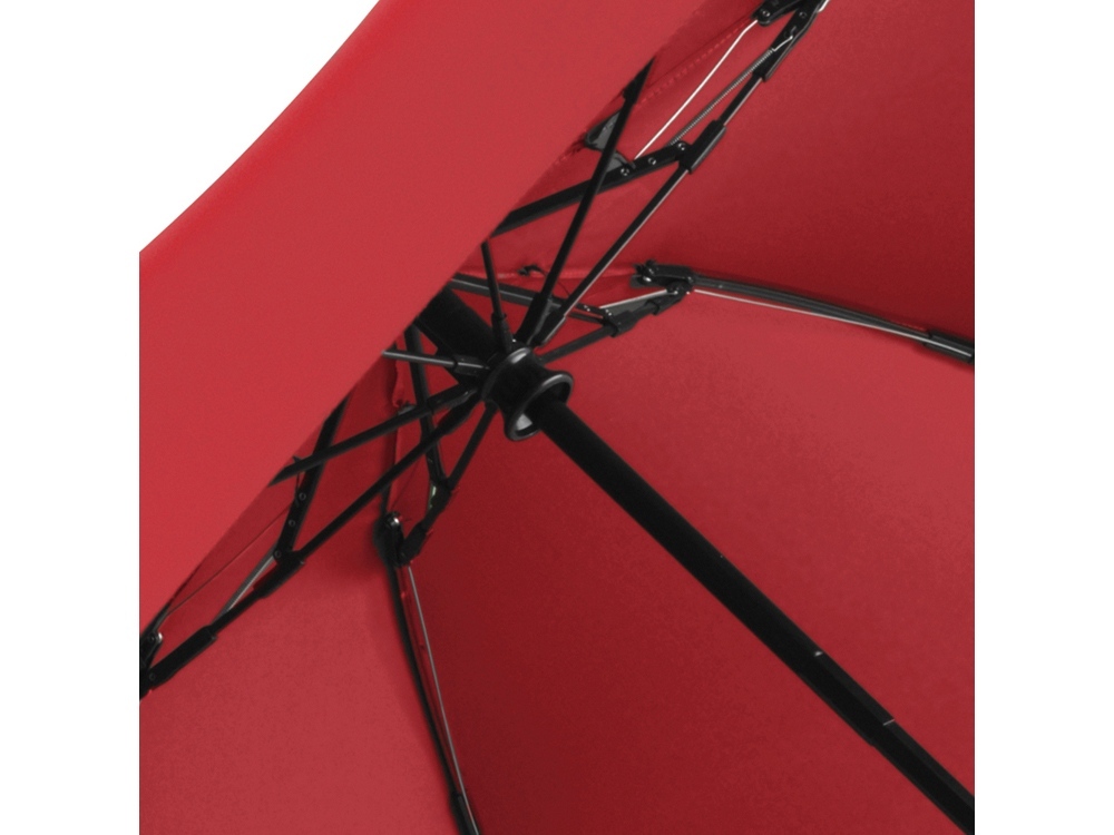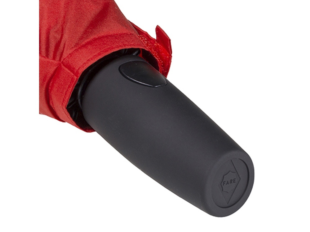 Современный зонт-полуавтомат с обратным сложением внутрь. Очень удобен в использовании, например, во время посадки в машину при складывании зонта вода остается внутри купола. Открывается с помощью кнопки на ручке из мягкого пластика.