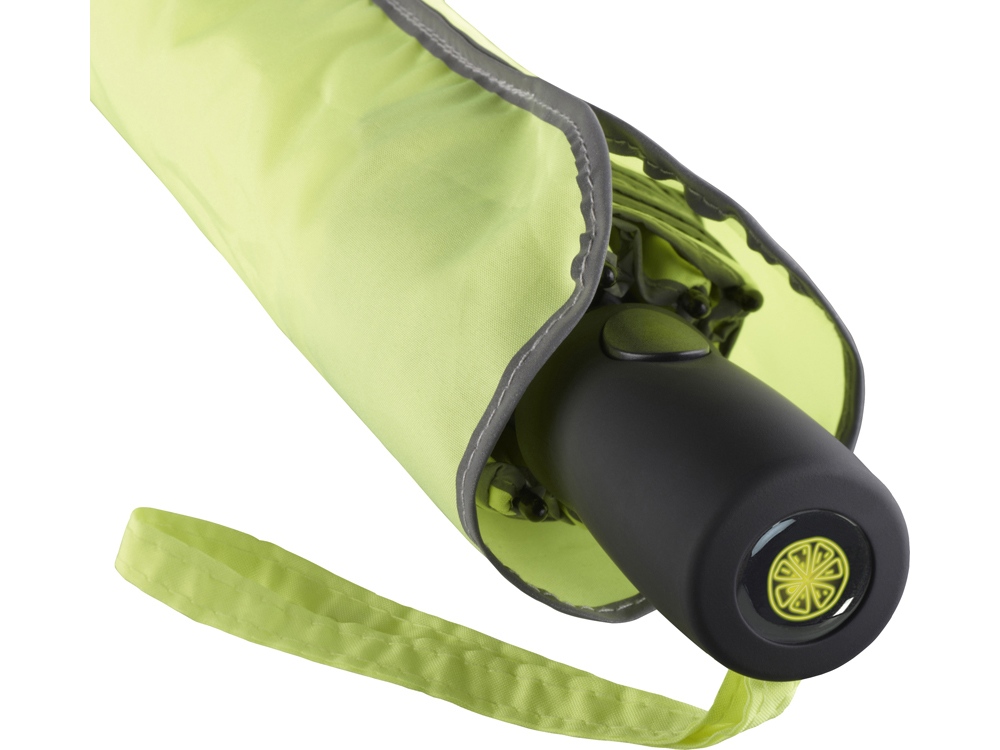 Зонт быстро открывается нажатием кнопки на ручке. Система защиты от ветра сохранит зонт в любую погоду. По краю купола нанесена светоотражающая отделка для безопасности в темное время суток.