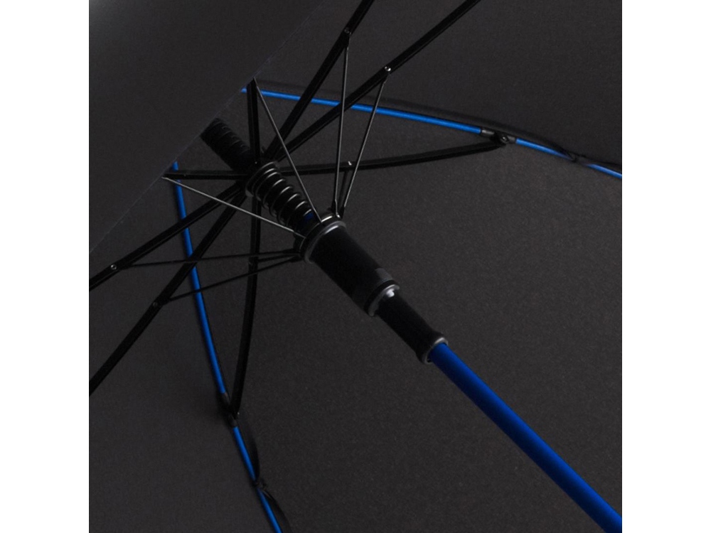 Полуавтоматический зонт быстро раскрывается при нажатии кнопки. Контрастные цветные спицы окрашены в тон трости. Благодаря системе WindProof зонт стоек к сильным порывам ветра. Купол зонта изготовлен из эпонжа из переработанного пластика, с иcпользованием технологии WaterSAVE, когда окрашивание материала происходит в процессе производства, за счет чего снижает потребление электроэнергии и воды.