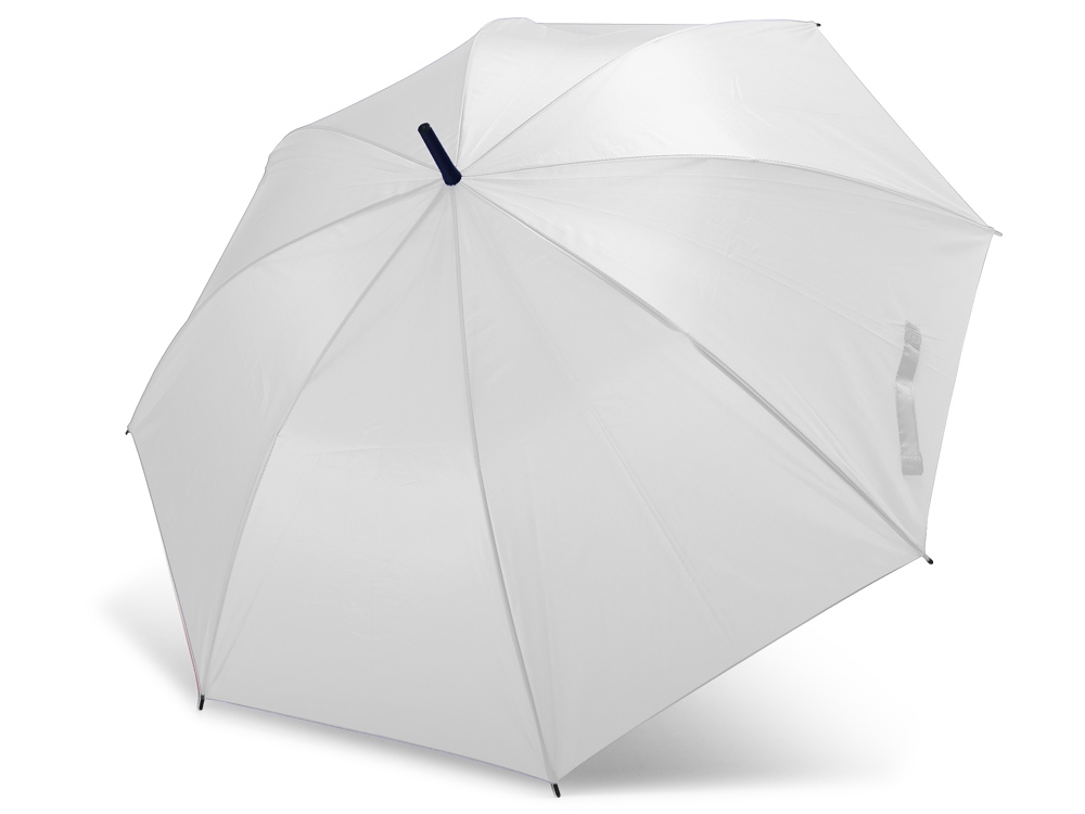 Автоматический зонт с тканью и ручкой в тон. Спицы и наконечники черного цвета. Застежка на липучке. 105 см в диаметре.